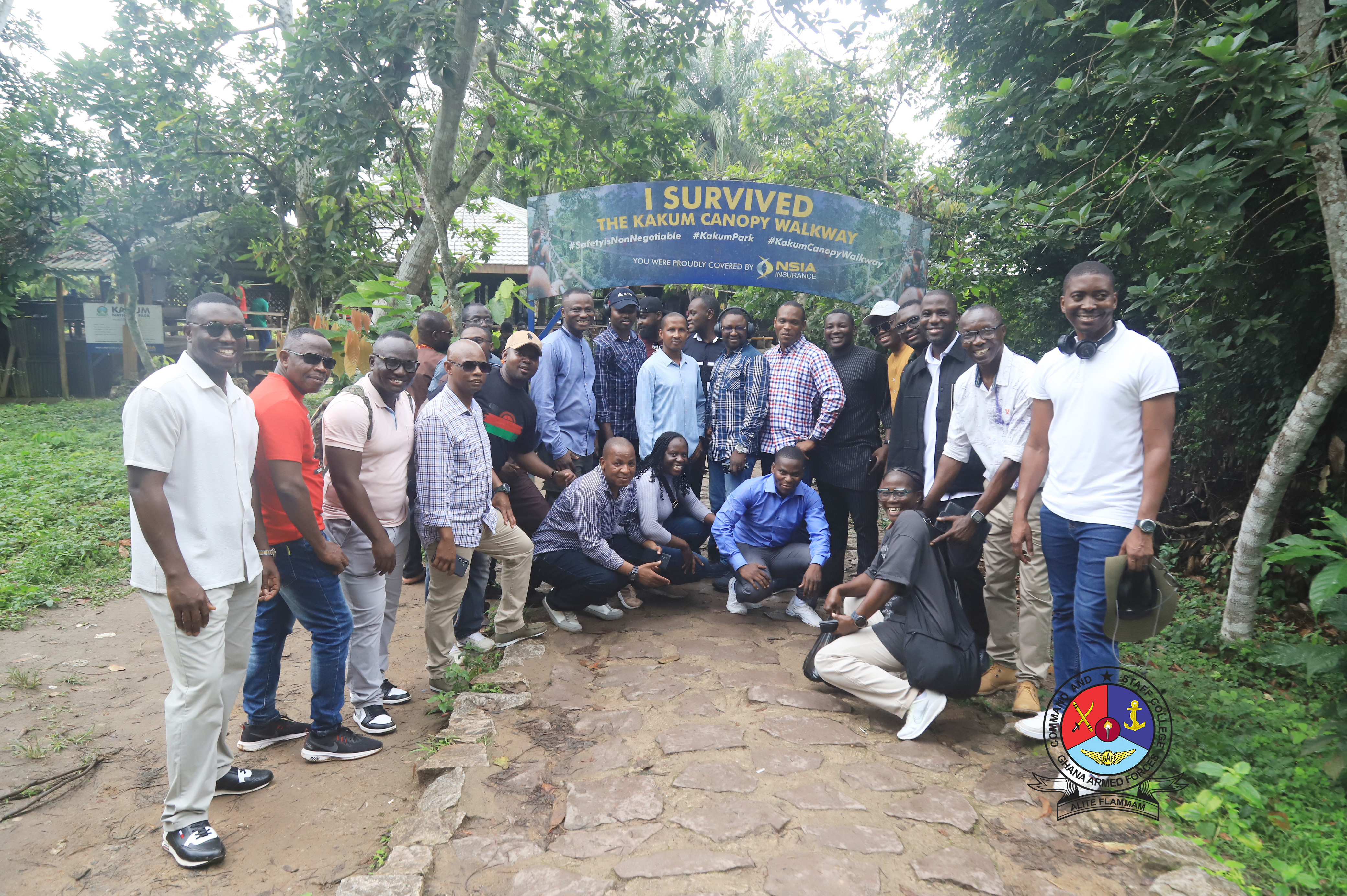 The Allied students of the Senior Command and Staff Course 47 (SCSC 47) of the Ghana Armed Forces Command and Staff College (GAFCSC) on Saturday, 27 September 2025, embarked on an educational and recreational tour of the Kakum National Park in the Central Region. The visit formed part of the College’s academic and cultural immersion programme, aimed at broadening the perspectives of Allied students and deepening their appreciation of Ghana’s rich natural and cultural heritage.