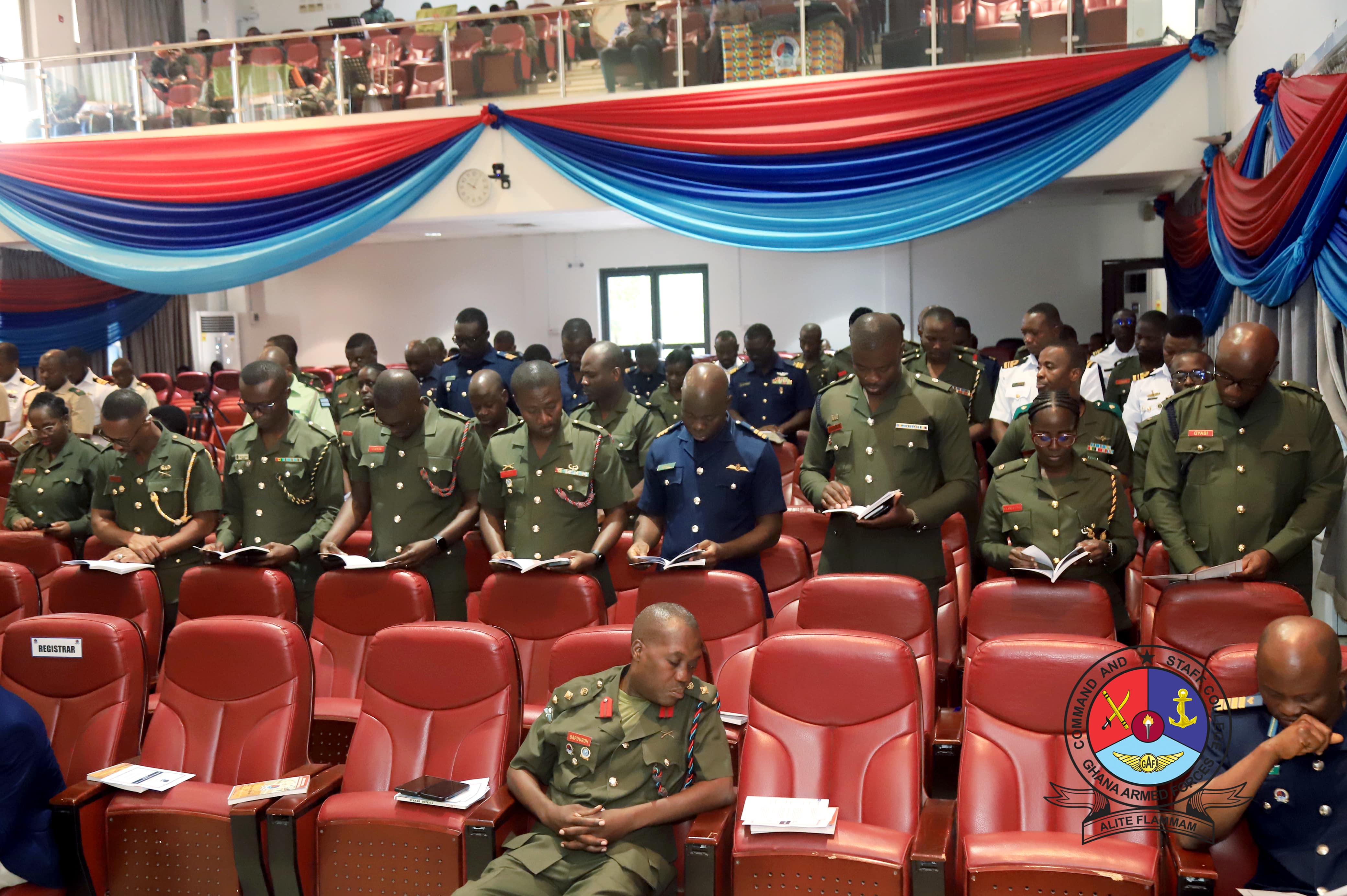 The Ghana Armed Forces Command and Staff College (GAFCSC) on Sunday, 5 October 2025, held an induction religious service for students of Senior Command and Staff Course 47 (SCSC 47) in Hamidu Hall, Otu Barracks, Teshie. The service, which commenced at 0900 hours, was held under the theme: “Building Leaders of Integrity and Service.”