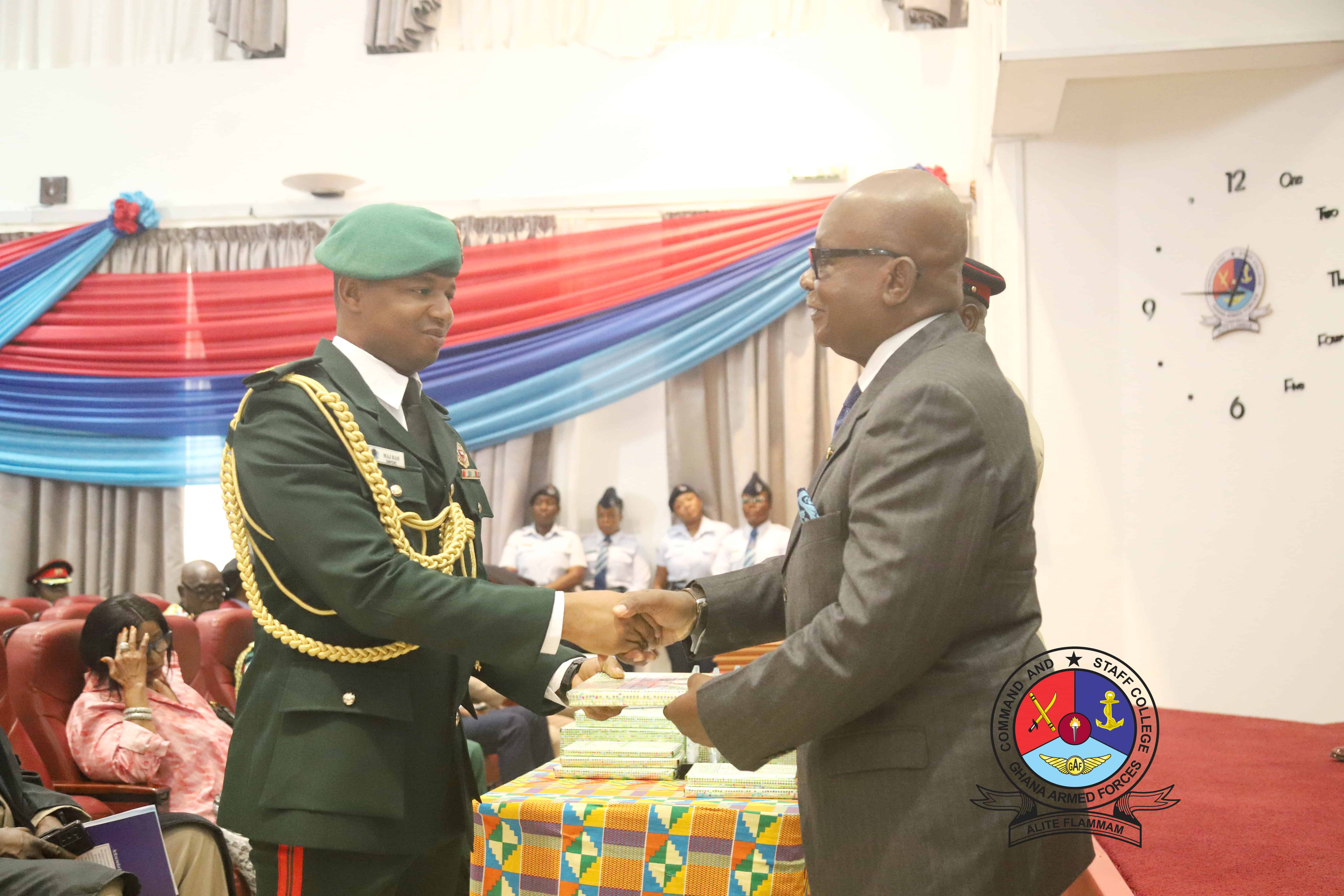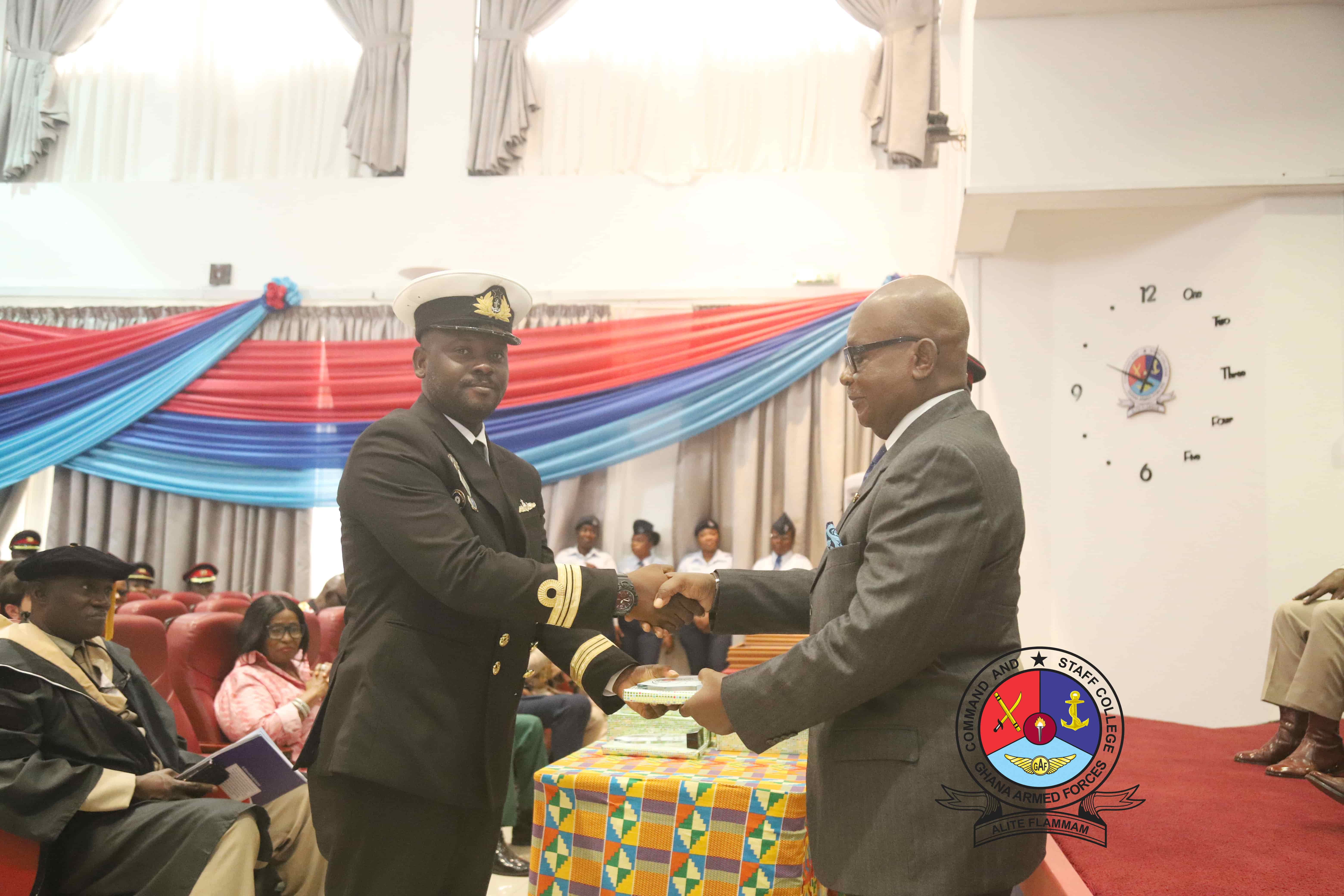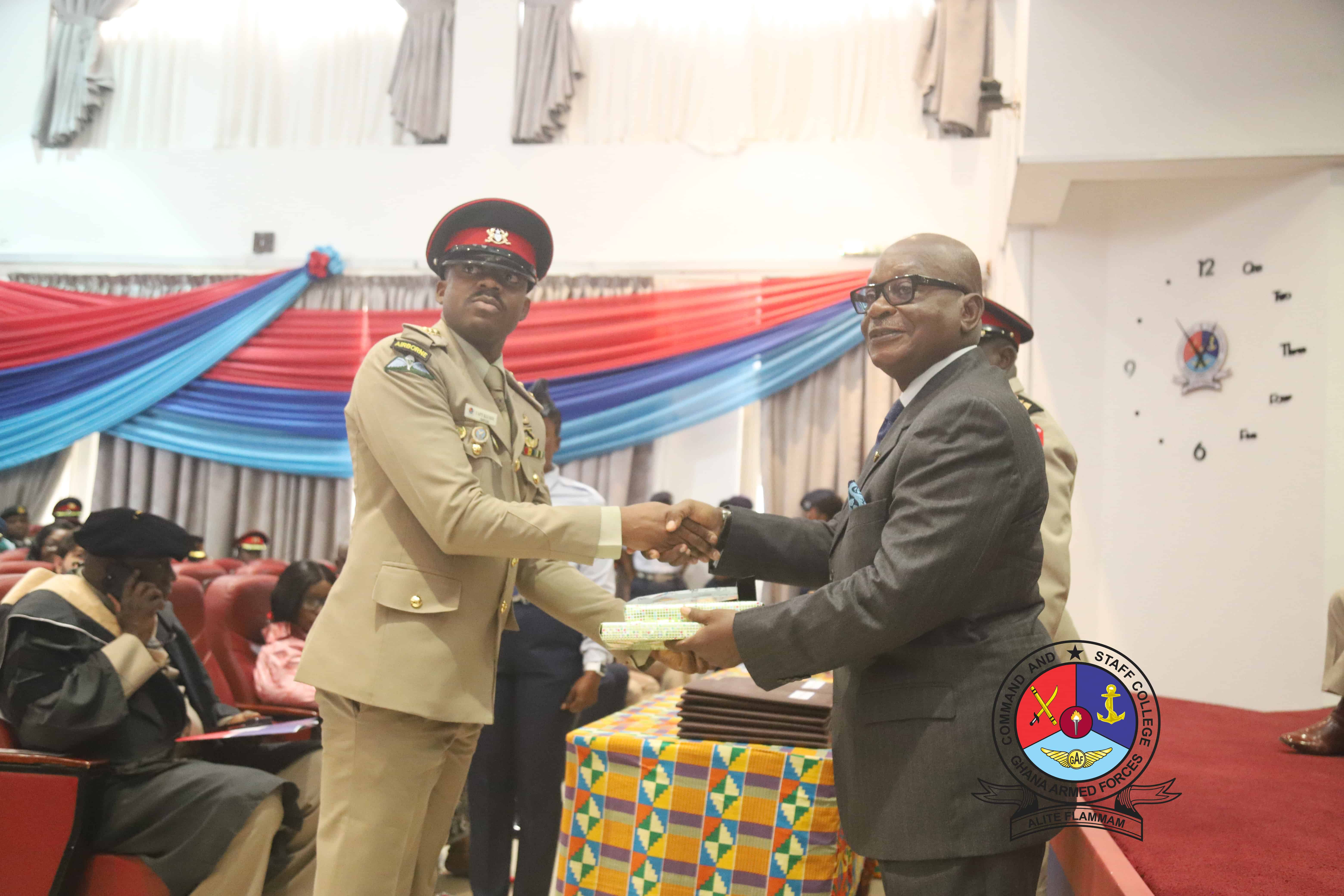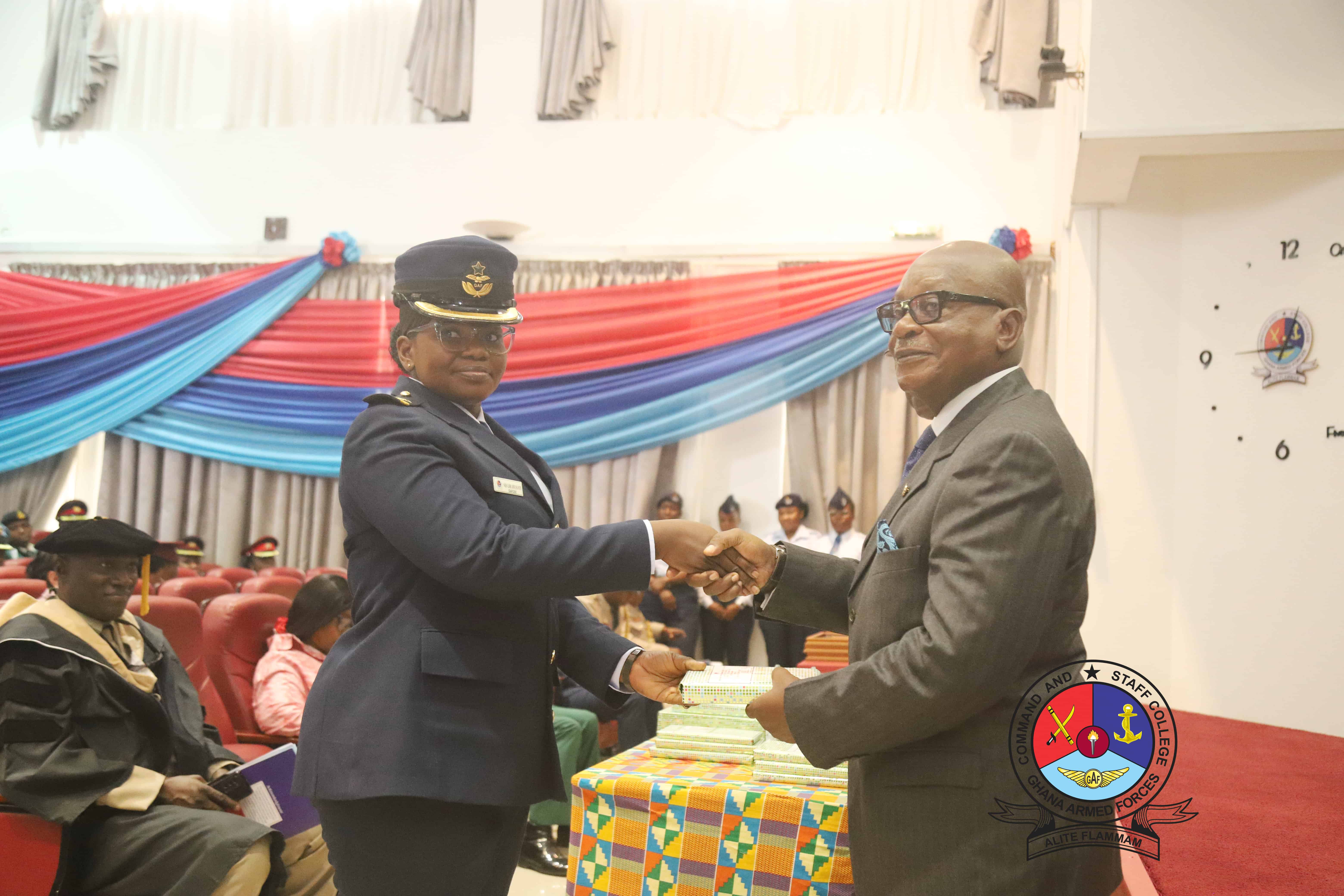 Squadron Leader Cynthia Doreen Awusi-Nti of the Ghana Air Force received the Everard Award, with Lieutenant Commander Henry Nana Odei Ofori-Duodu recognized as the Best Navy Student. Squadron Leader Emmanuel Tettey Okan was awarded Best Air Force Student. Four other graduates also received prizes for the Best Assistant Commandant’s Research Paper Competition Awards and the Leadership Case Study Award.