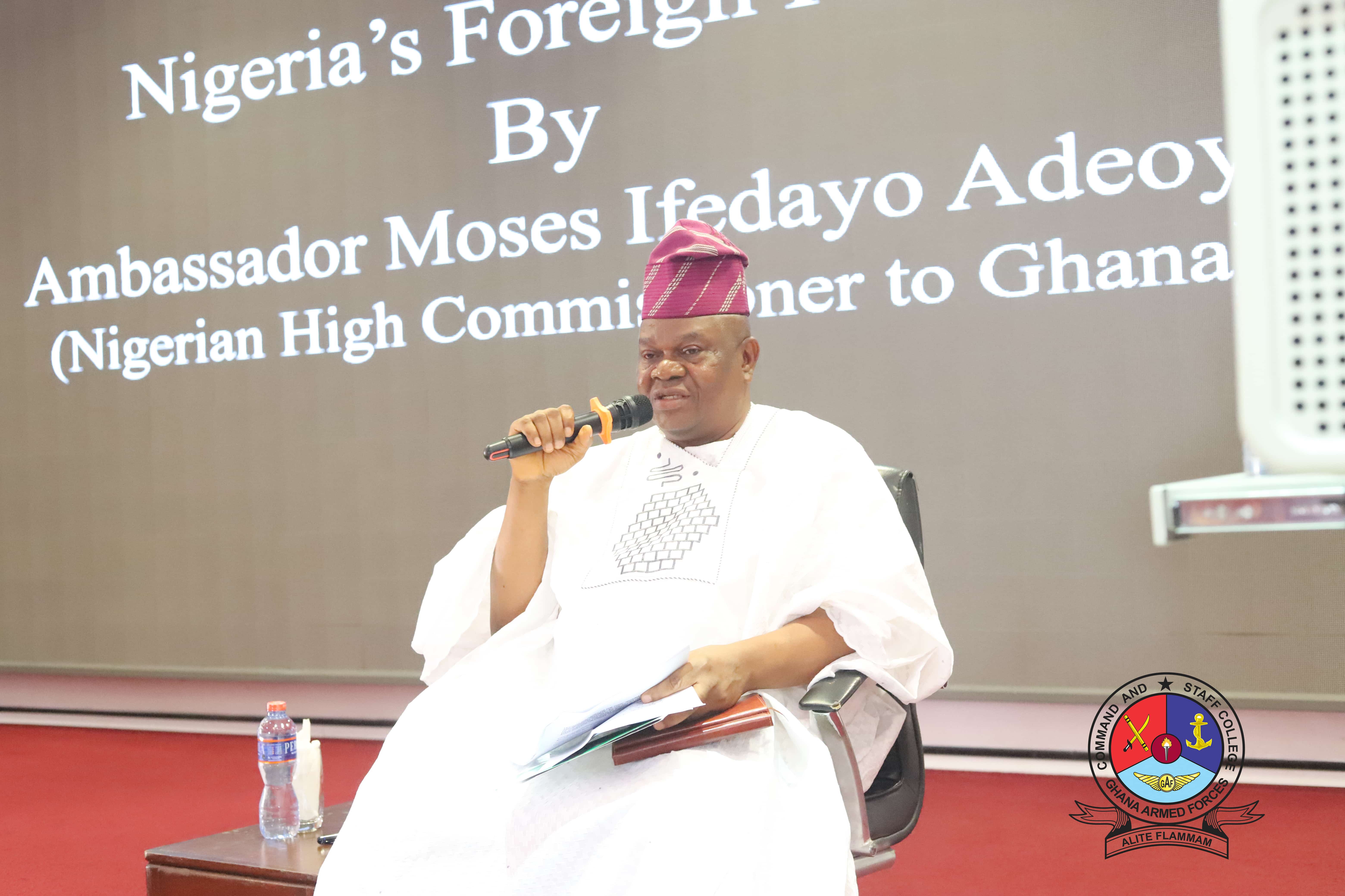 The Nigerian High Commissioner to Ghana, Ambassador Moses Ifedaya Adeoye, paid a visit to the Ghana Armed Forces Command and Staff College (GAFCSC) on Friday, 17 April 2026, at Otu Barracks, Teshie.